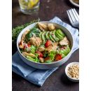 Вега чикен — это продукт с высоким содержанием белка из зерен пшеницы и полбы, который по внешним и вкусовым параметрам практически не отличается от кусочков курицы, но при этом полностью состоит из растительных компонентов и является 100% веганским продуктом.